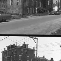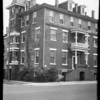 The Simpson-Oaksmith House, captured in 1965, stands prominently at the corner of East Front and Pollock Streets in New Bern, NC, showcasing its classic architecture and urban setting. The New Bern Historical Society owns the digital copy of this image.