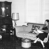 A historical black and white photograph capturing the serene Old Lady's Home located at the southwest corner of Pollock and Bern Streets in New Bern, North Carolina. This may be the Enoch Wadsworth Memorial Home which housed elderly women with limited income in the 1950s. The New Bern Historical Society owns the digital copy of this image.