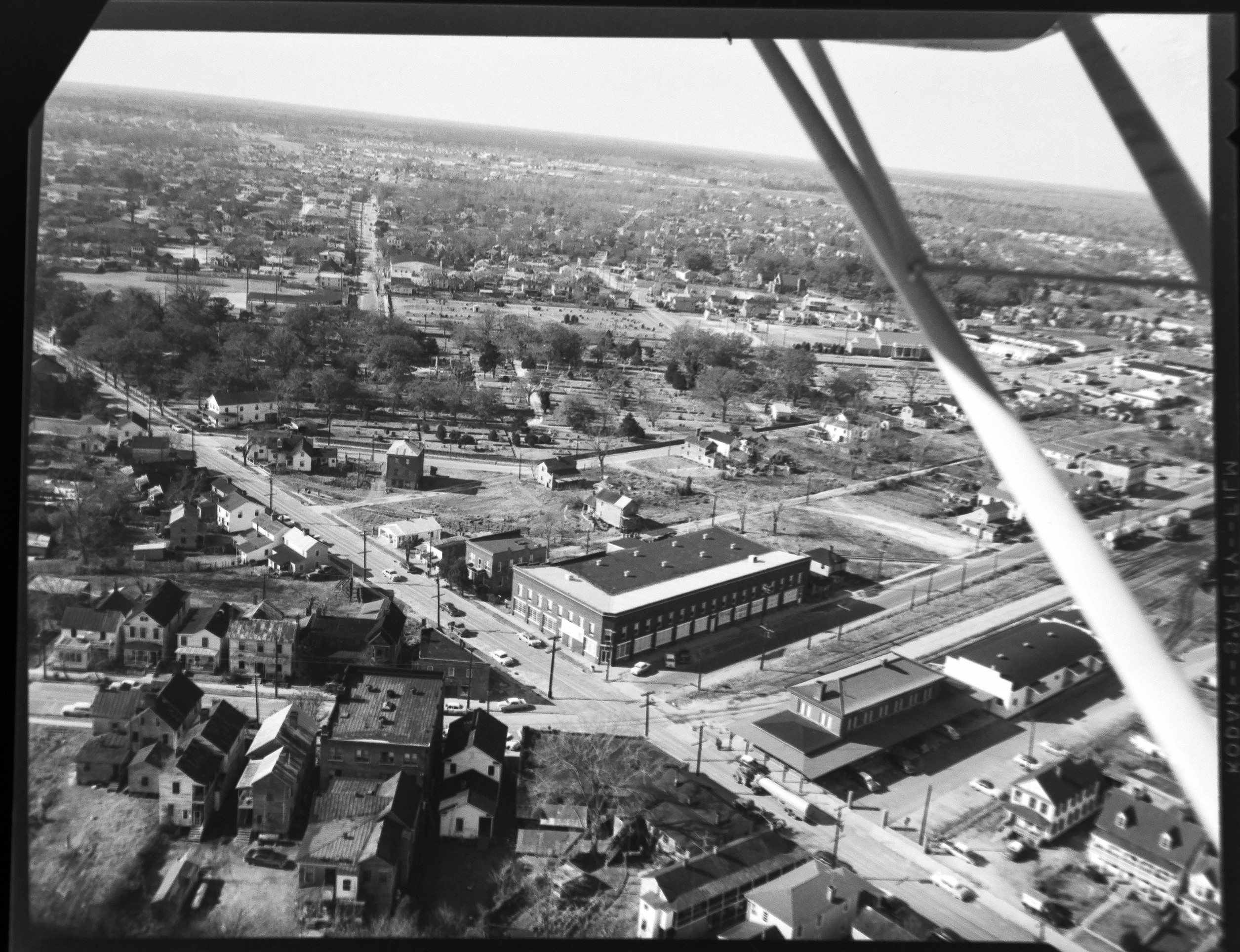 Historic aerial photograph capturing the urban layout and architectural features of New Bern, North Carolina, with residential and commercial areas visible.