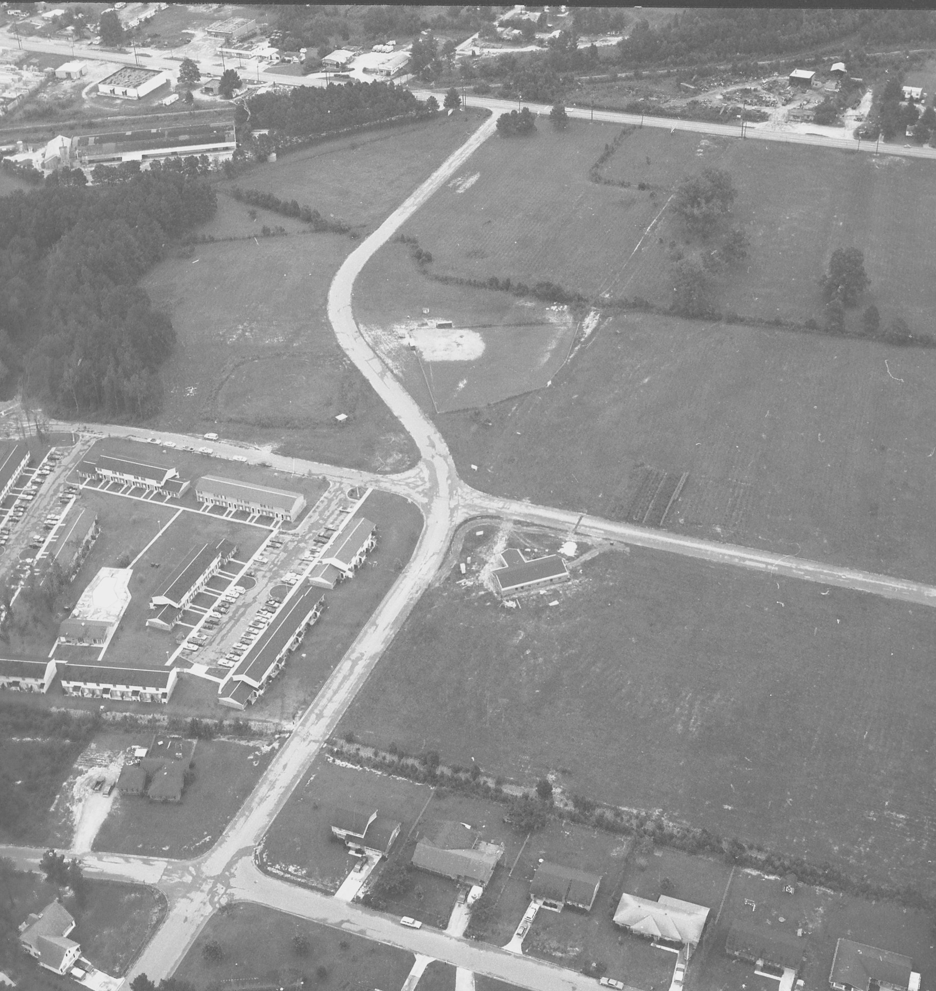Aerial view of Colony Village Apartments in New Bern, NC, showing the early stages of its construction and surrounding undeveloped lands, dated January 27, 2011.