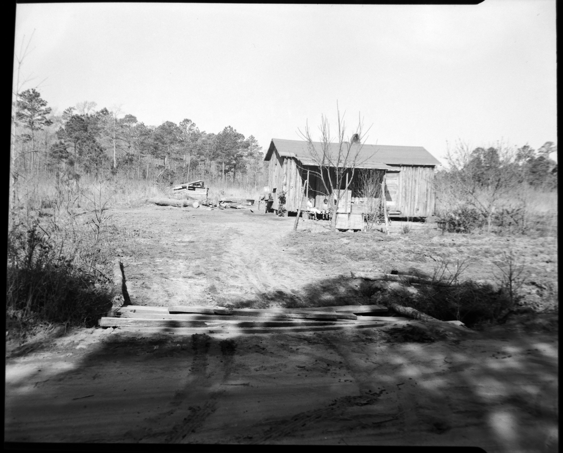 A historical photograph depicting a rustic homestead in a rural part of Craven County, New Bern, NC, showcasing early 20th-century living conditions.