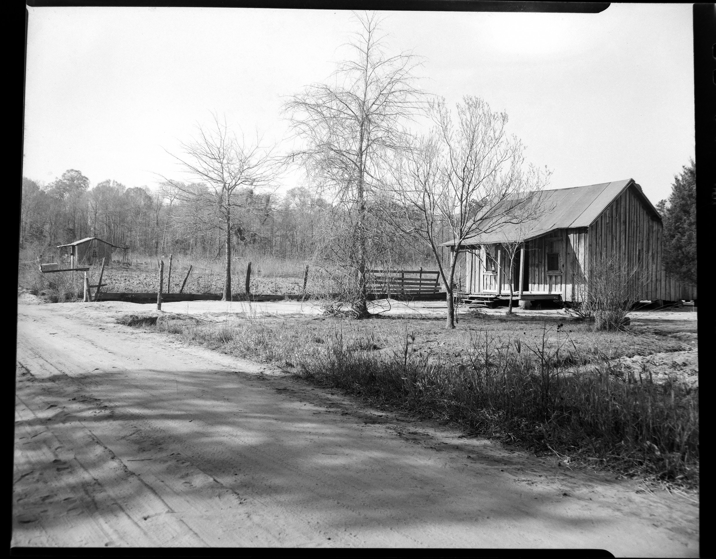 A vintage photograph depicting a rustic cabin in Craven County, North Carolina, capturing the essence of rural African-American housing during the mid-20th century.