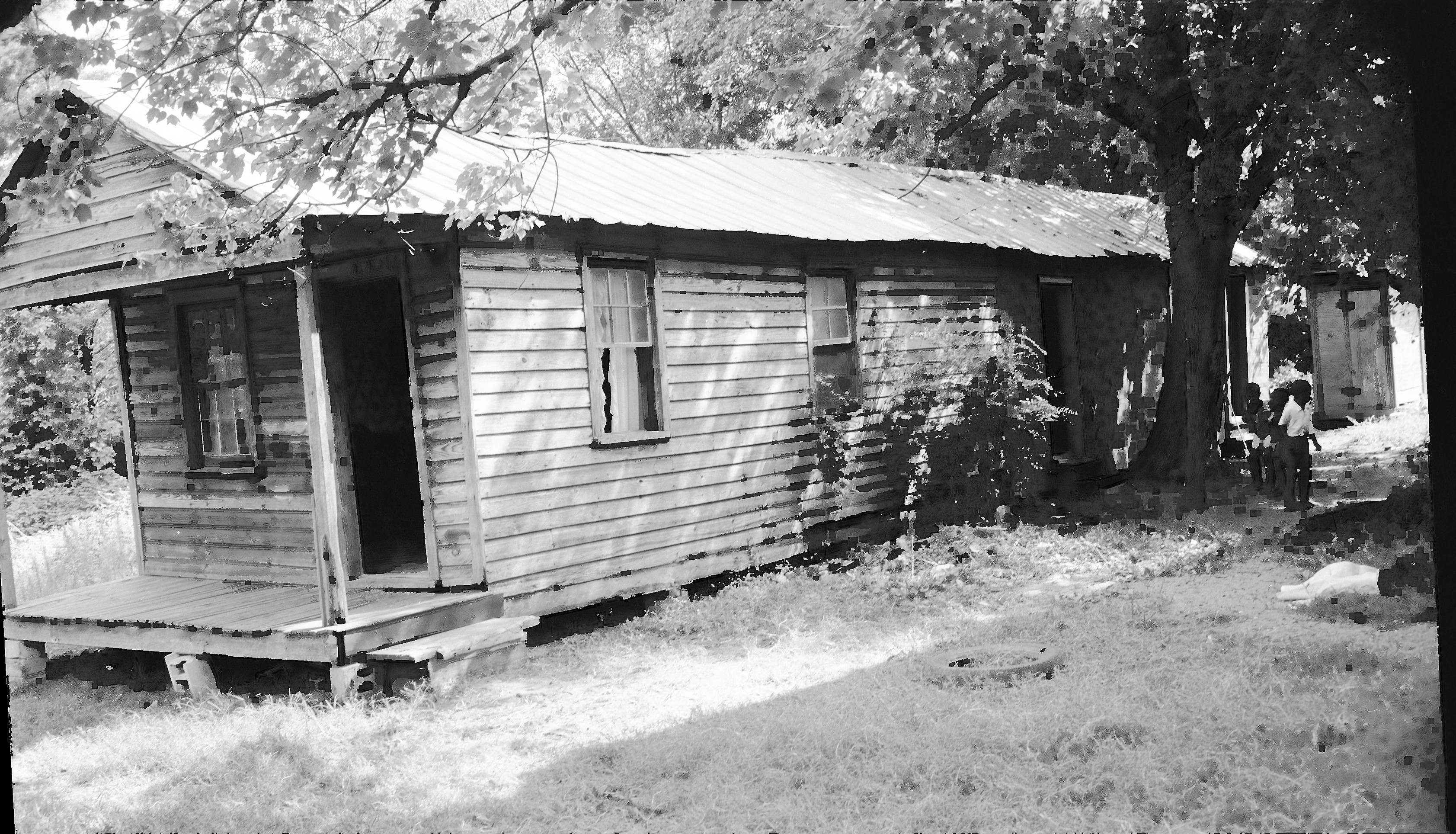 A historical image capturing a moment of everyday life outside a wooden house in the Duffyfield area of New Bern, NC during the 1950s.