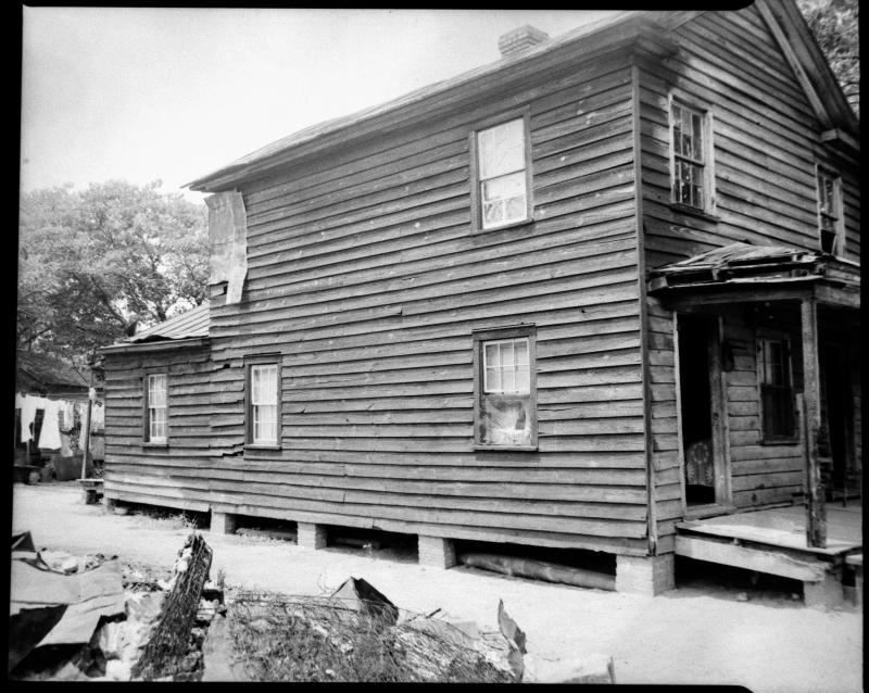 A photo capturing a weathered wooden house in the Duffyfield area of New Bern, NC from the 1950s, depicting the era's architectural resilience.