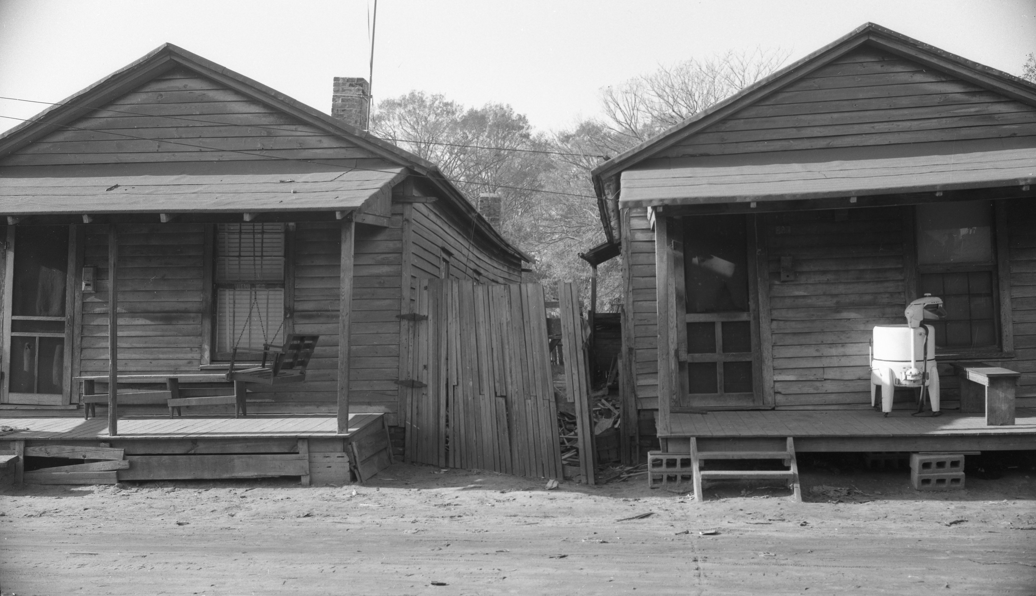 A glimpse into the residential architecture and living conditions of the Duffyfield area in New Bern, NC during the 1950s, showcasing two modest wooden homes.