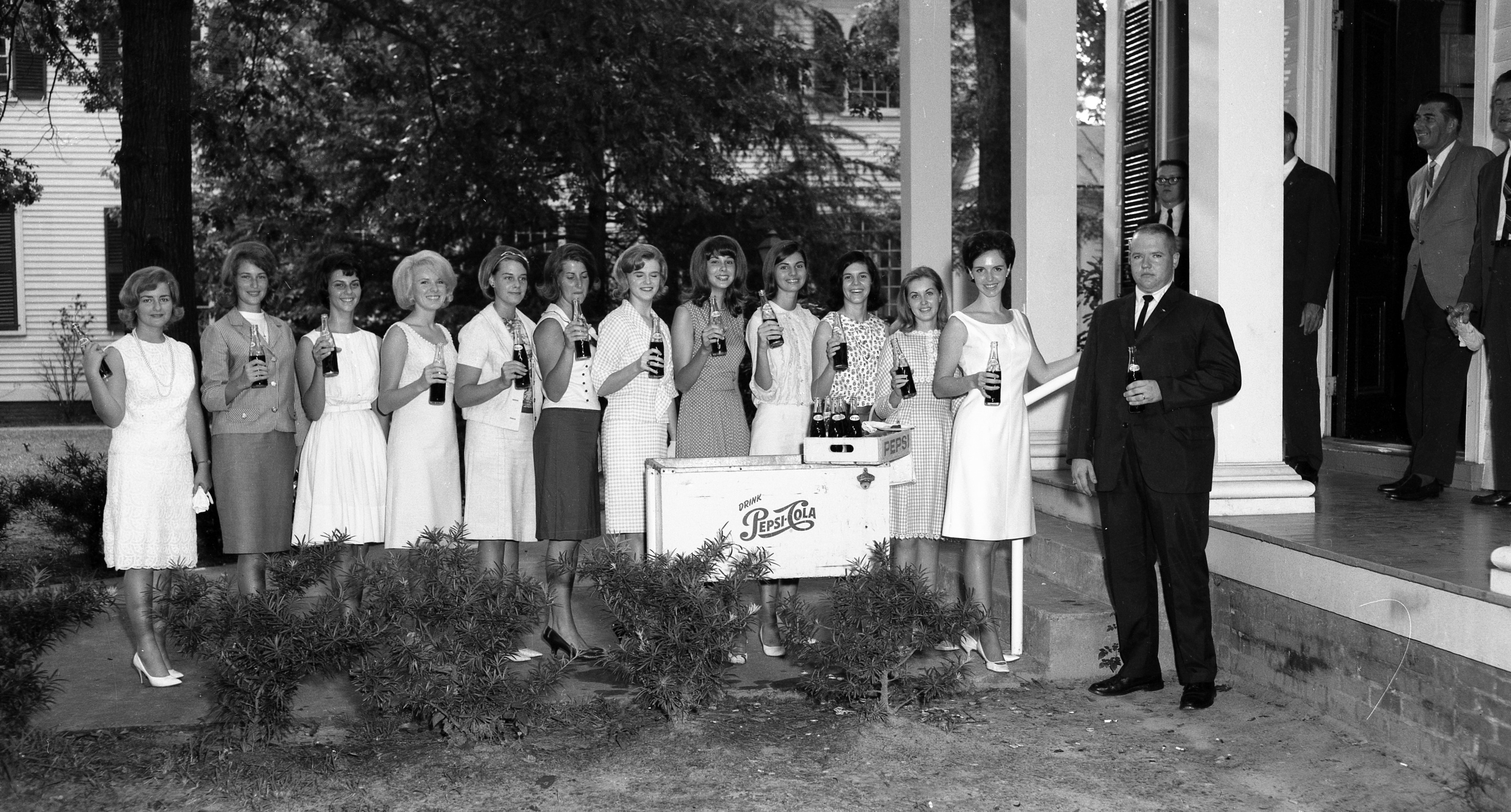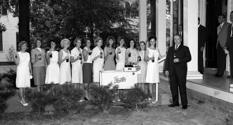 A group of contestants, each holding a bottle of Pepsi, line up for a promotional event in New Bern, NC.