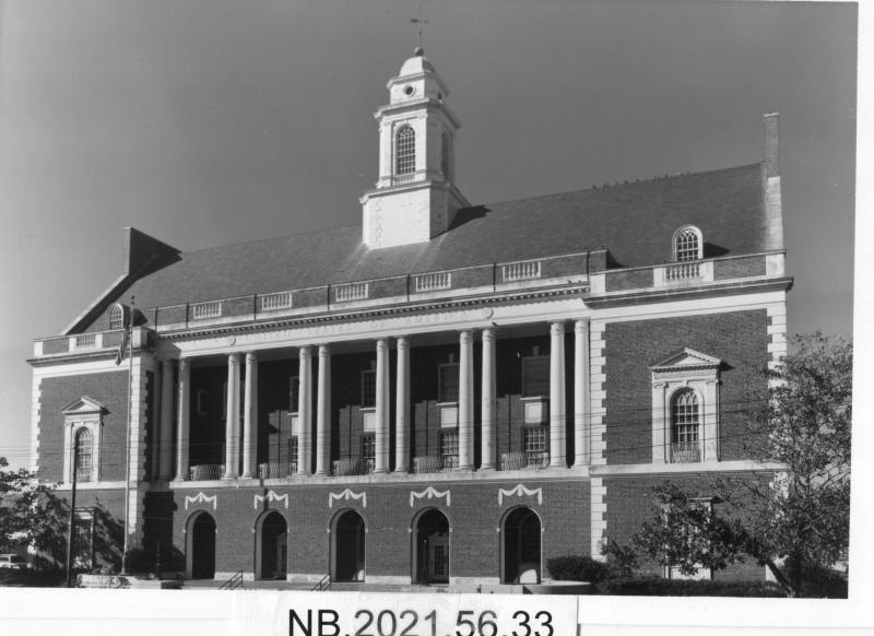 Historical photograph depicting the Federal Building in New Bern, NC, captured in July 1973, showcasing its classical architectural style with prominent columns and a cupola.