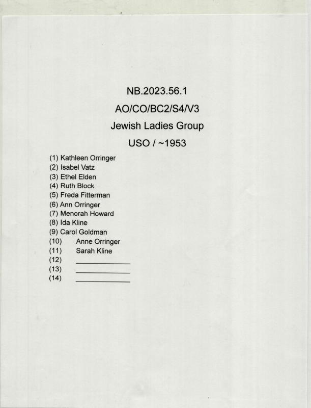 A group of Jewish women proudly holding a USO banner in New Bern, NC, around 1953, showcasing community support.