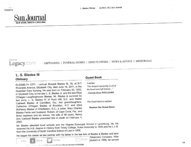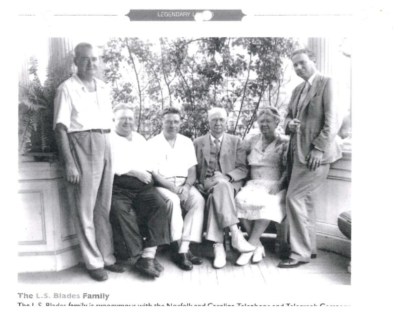 The Dr. L.S. Blades Family including Dr. Blades, his wife Grace Melick Blades, and their four sons, Camden Blades, James Evans "Fats" Blades, Lemuel S. Blades, Jr, and Melick Blades in a relaxed gathering at their home in Elizabeth City, NC.