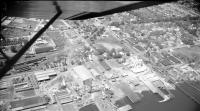 Aerial View of New Bern Industrial Area Historic aerial photograph depicting the industrial sector along the riverfront of New Bern, NC, showcasing early 20th-century infrastructure and architecture. -