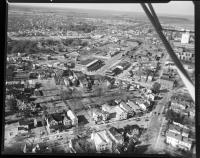 Historic Aerial View of New Bern, NC Aerial photograph of downtown New Bern, North Carolina, capturing its urban landscape and waterfront before 1955. -